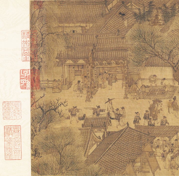 值得注意的是,《清明上河图》虽然场面热闹,但核心要表现的并非繁荣市景,而是一幅带有忧患意识的“盛世危图”,此中有许多细节还可品玩,拟另立一文详谈。
