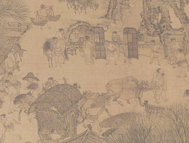 此画声名显赫,广受青睐,仿摹者众多,各地公私藏家手中还有许多摹本和伪造本,本文所选的是北京故宫博物院藏本,以下裁取前中后部分片断,Enjoy: